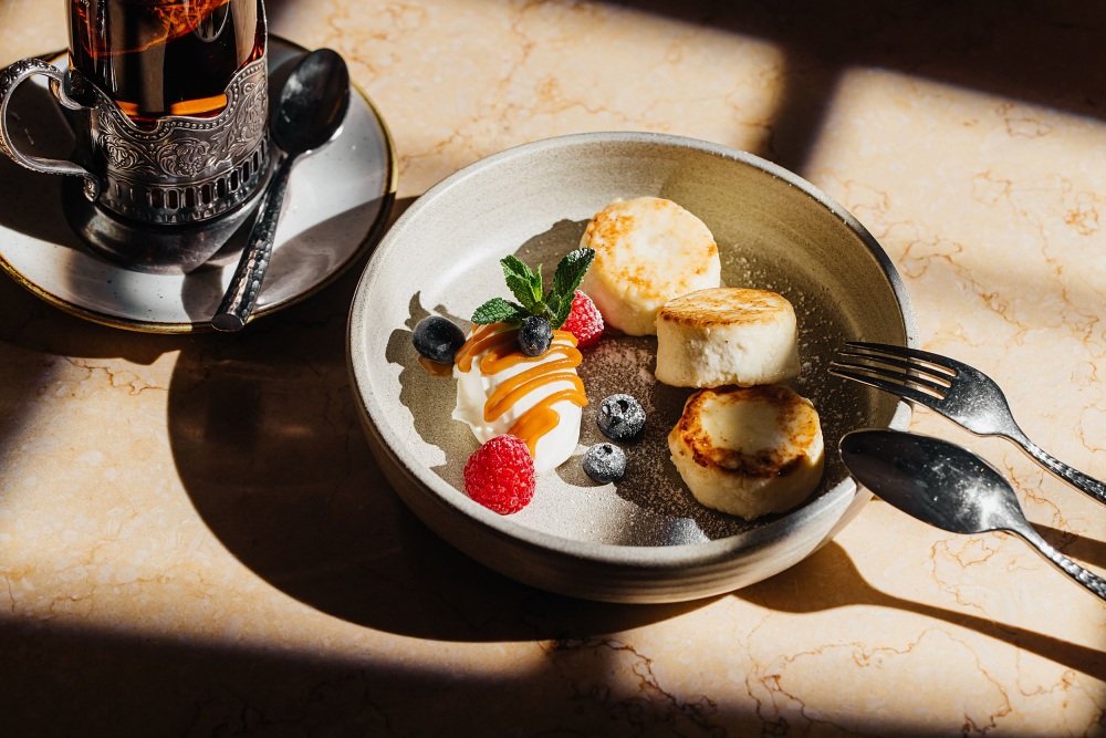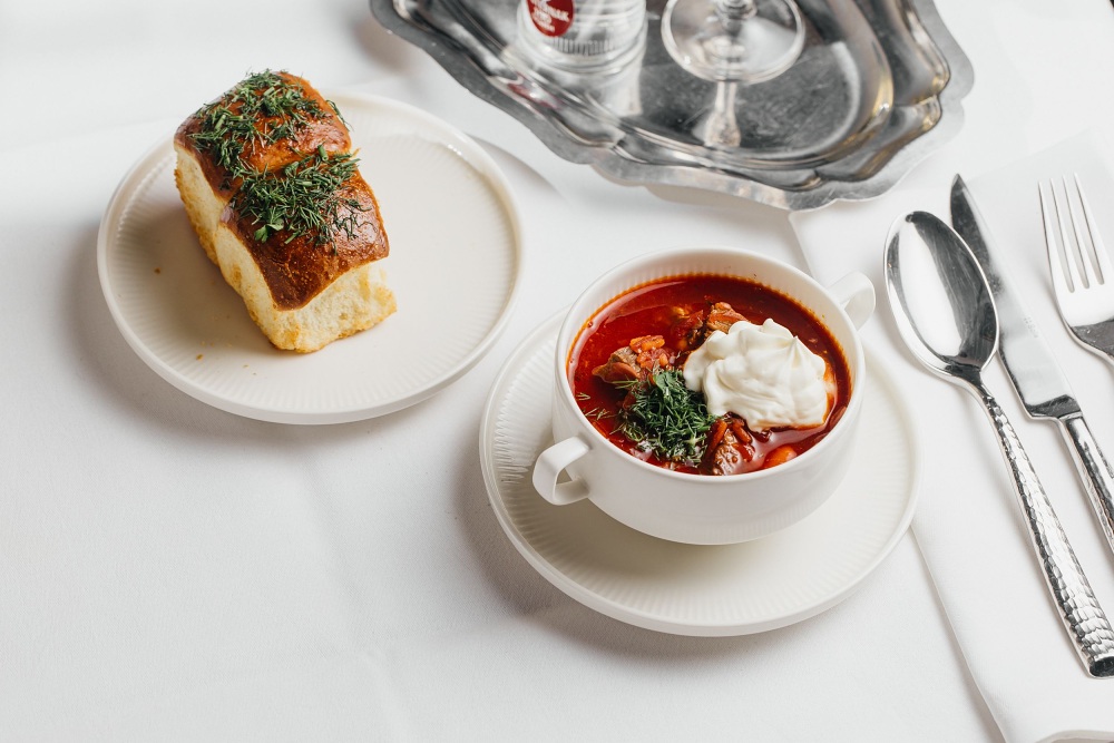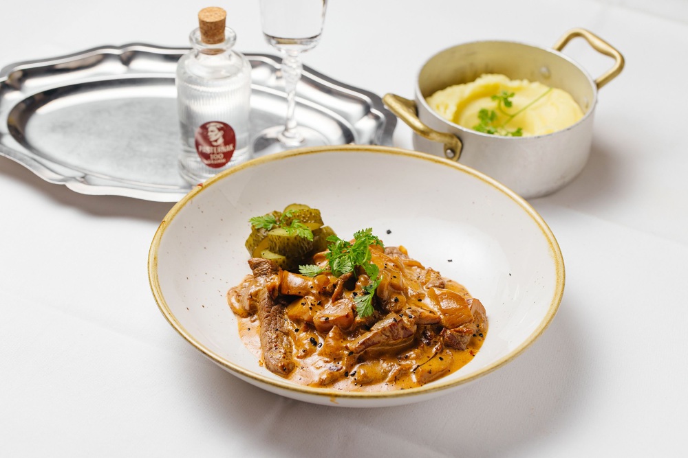 Bewusst und gekonnt wurden der ländliche Charakter der traditionellen russischen Küchen mit Trends vereint. Die wechselnde Speisekarte orientiert sich an saisonalen Gegebenheiten und verwendet ausschließlich frische Zutaten.