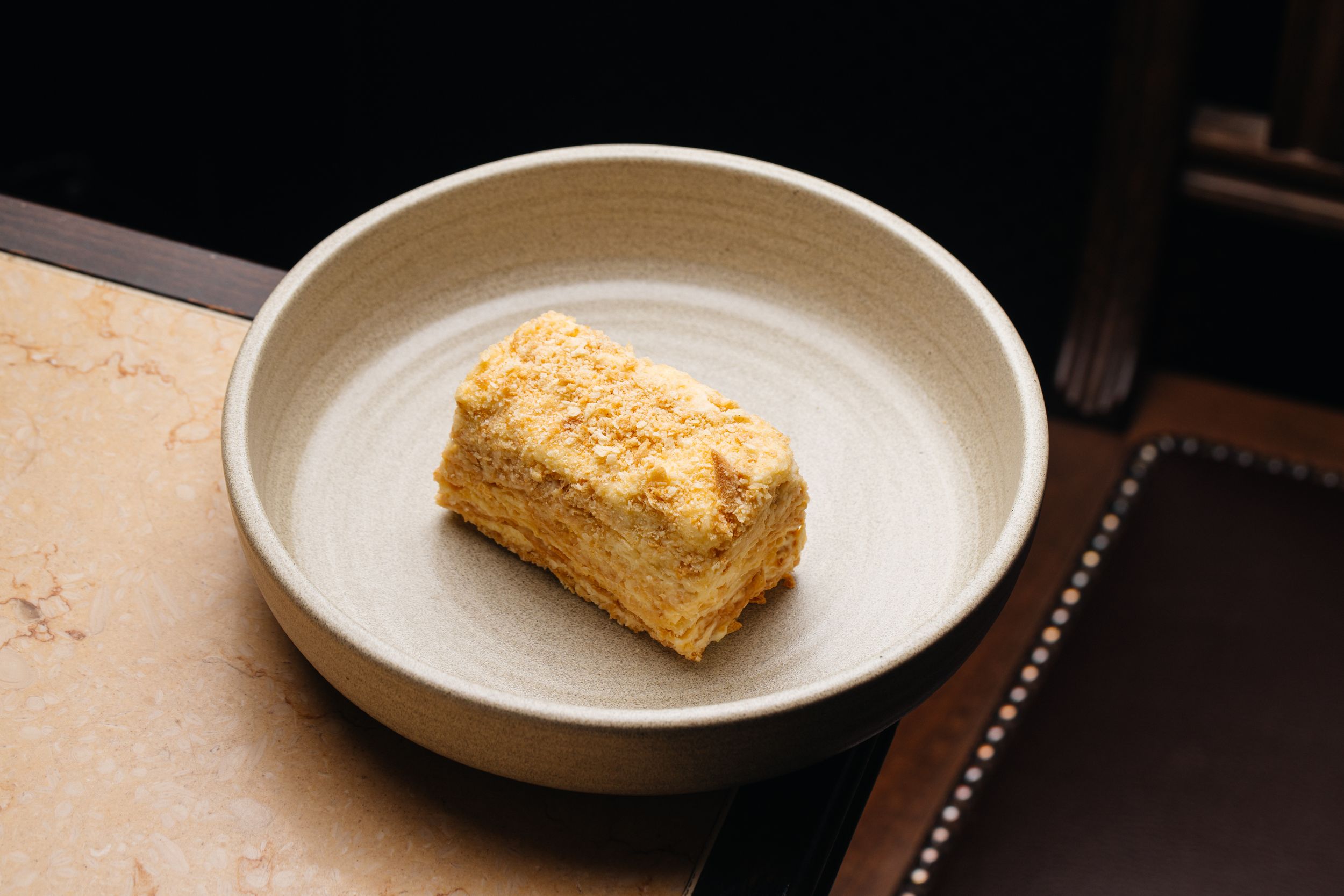 - "Napoleon" cakeLayered puff pastry cake with custard